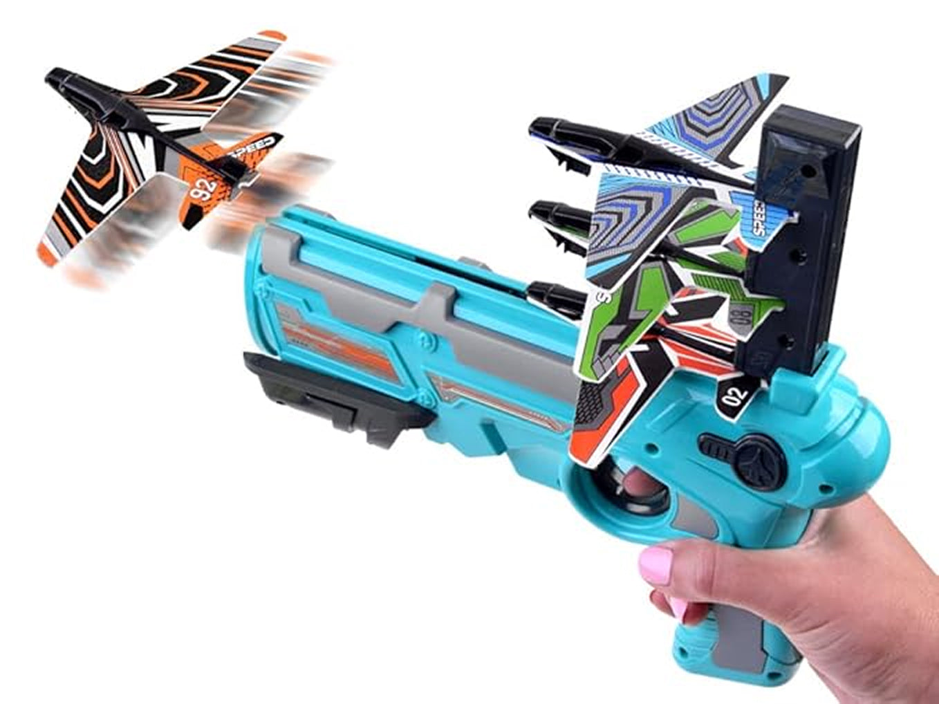 Exciting airplane launcher toy with pistol grip. Easy to use, safe outdoor fun for boys & girls. Great for air battles, parties, and active play.