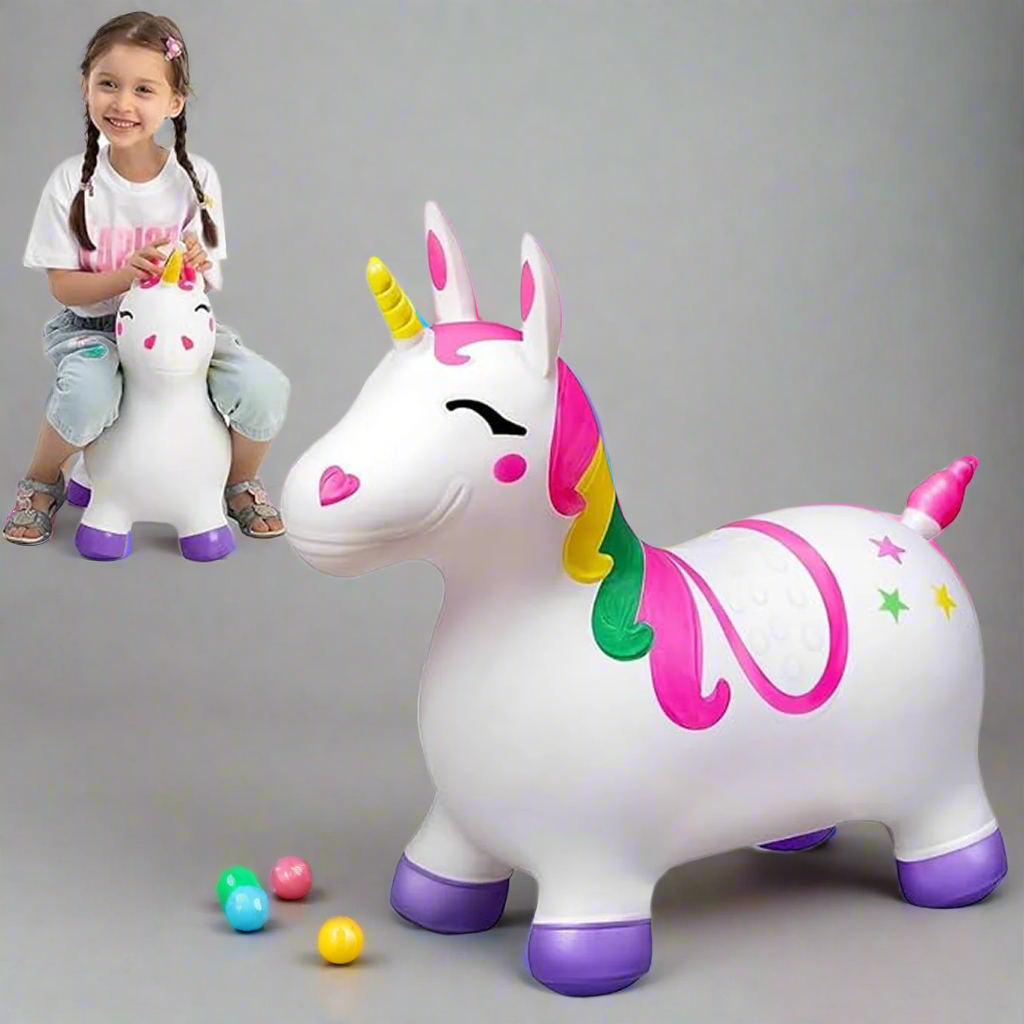 Durable inflatable hopper horse toy for kids. Safe, fun jumping and riding toy made of heavy-duty rubber. Great for active indoor or outdoor play.